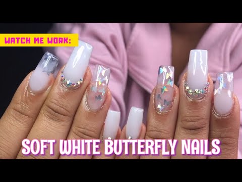 Watch Me Work Soft White Butterfly Encapsulated Acrylic Nails PRETTYSETCO - Updated Watch Me Work Soft White Butterfly Encapsulated Acrylic Nails PRETTYSETCO , Video Soft White Nails Newest!